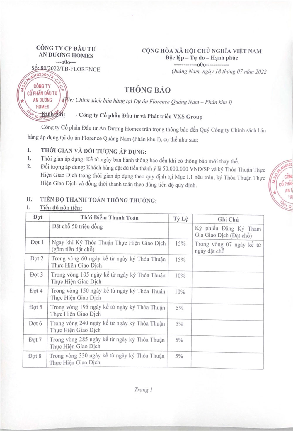 • Tên dự án: Florence Quảng Nam