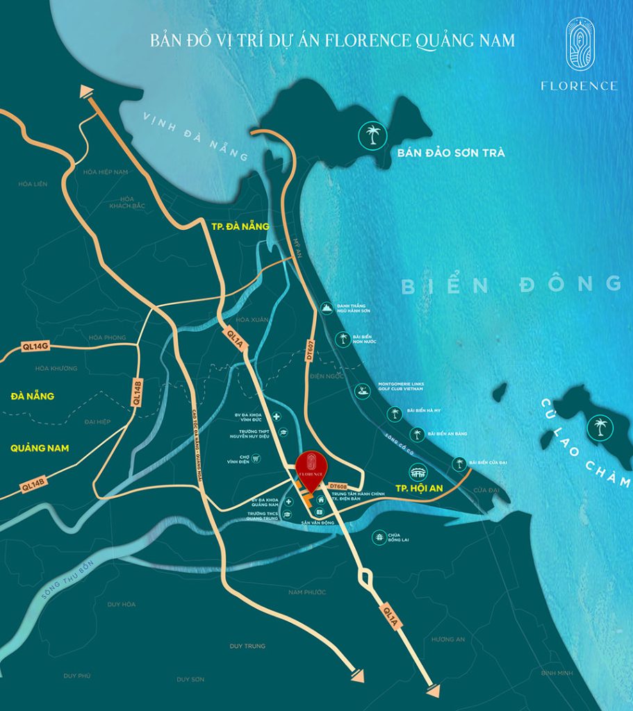Dự án Florence Quảng Nam sở hữu vị trí đắc địa, trung tâm hành chính của thị xã Điện Bàn, tiếp giáp Quốc lộ 1A, DT 608 kết nối hiệu quả đến các vùng kinh tế chính. Theo quy hoạch đến năm 2030 của tỉnh Quảng Nam, thị xã Điện Bàn sẽ trở thành Thành phố trực thuộc tỉnh, là đô thị kết nối phát triển cùng TP. Đà Nẵng và TP. Hội An.