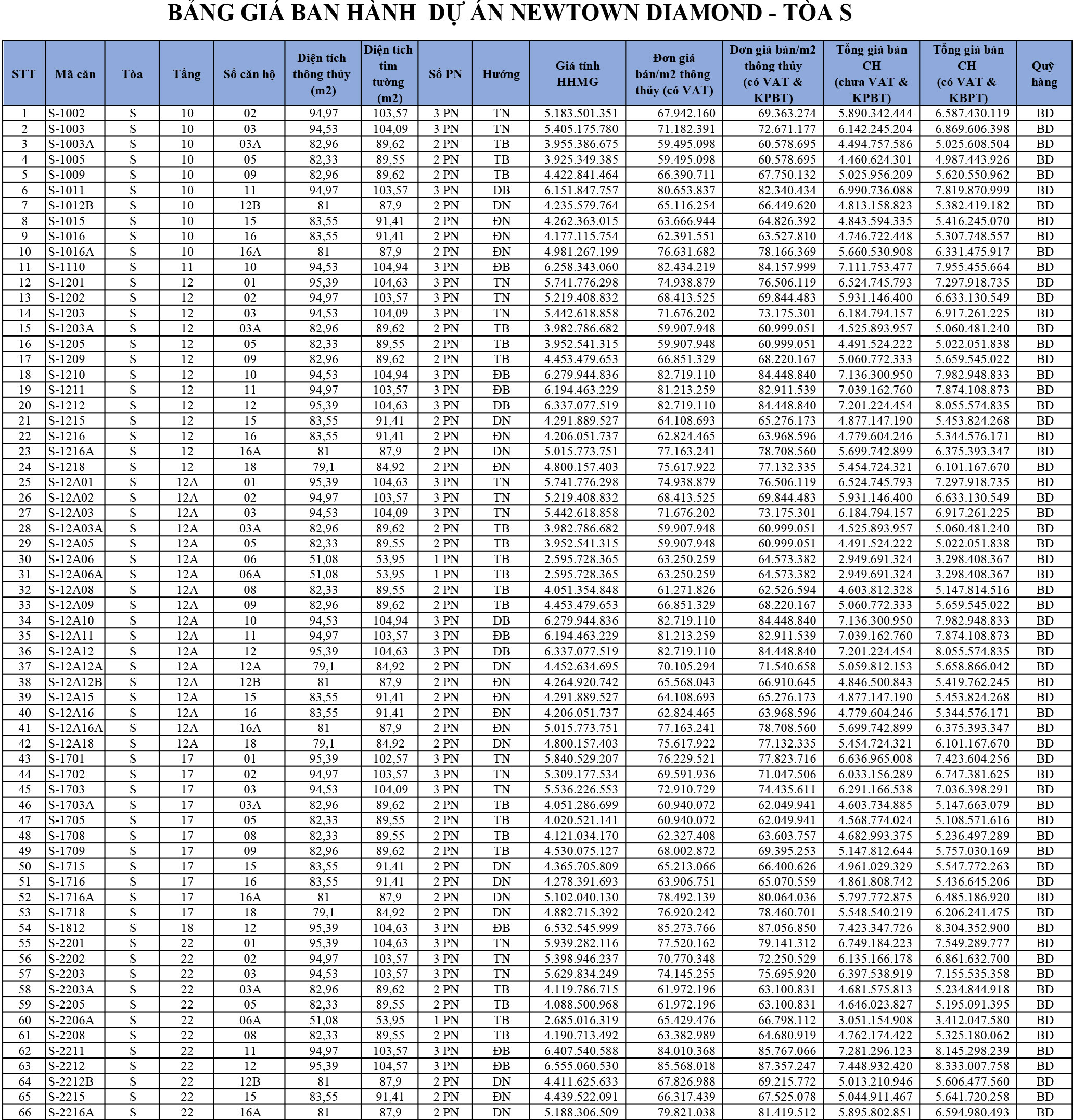 - Diện tích đa dạng : 1-2-3PN, từ 34,14m2 – đến 128,34m2)