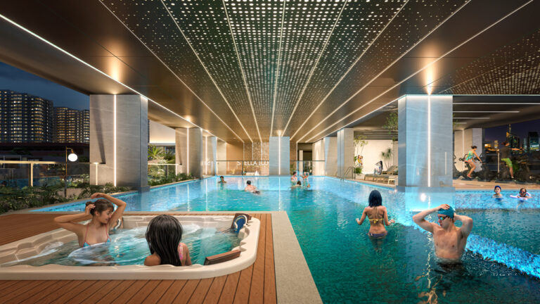 • Mật độ xây dựng của dự án là 35%, đảm bảo không gian xanh và tiện ích công cộng được bố trí hài hòa.